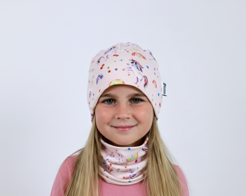 Tento veselý kousek najdete také ve zvýhodněném setu s nákrčníkem – SET JEDNOROŽCI s DUHOU, který spolehlivě ochrání před větrem a chladem.