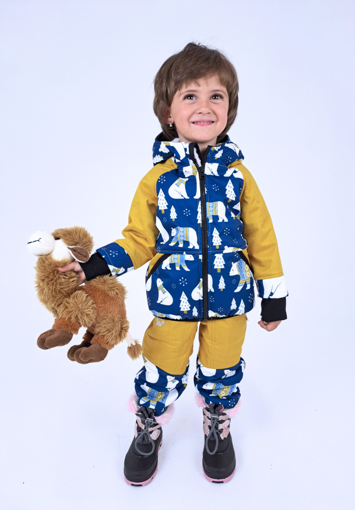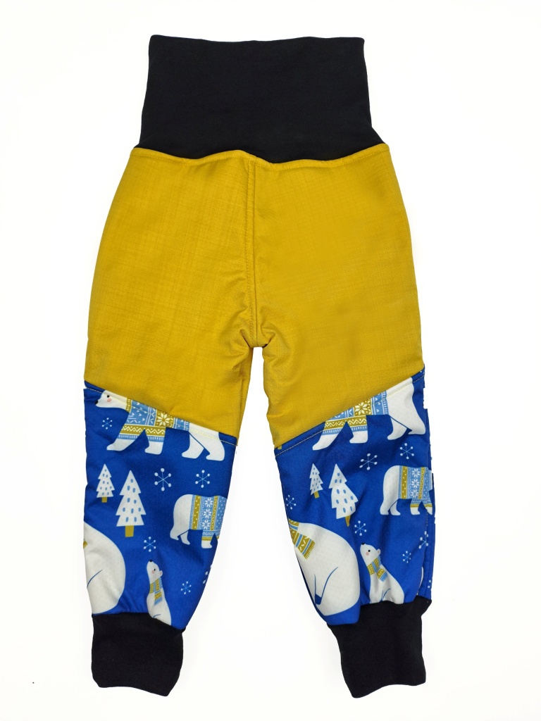 Tyto baby softshellové kalhoty s beránkem s roztomilým motivem ledních medvědů v kombinaci s hořčicovou jsou ideální volbou pro chladné dny. Díky zateplenému softshellu vaše dítě zůstane v suchu, teple a pohodlí – bez kompromisů.