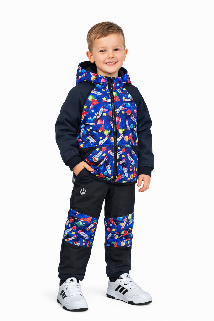 Pohodlné a praktické dětské softshellové kalhoty v designu RAKETY jsou ideální na každodenní řádění venku – do školky, na hřiště i na výlety. Lehce užší střih dětem skvěle sedí a záševky na kolenou umožňují volný pohyb.