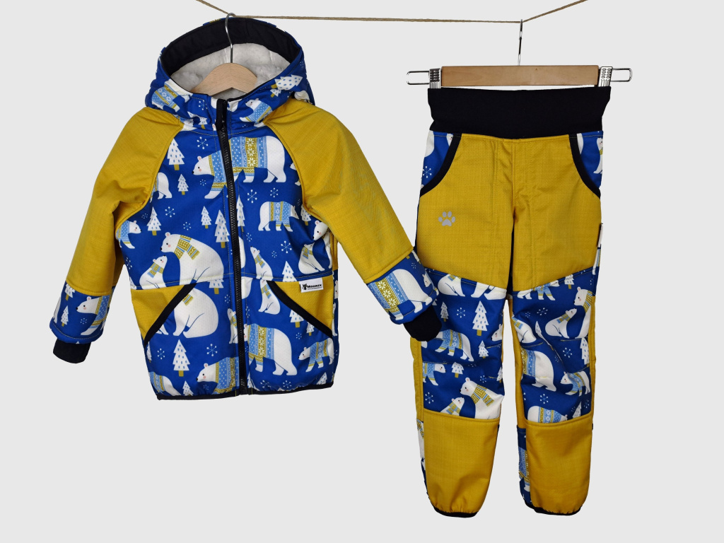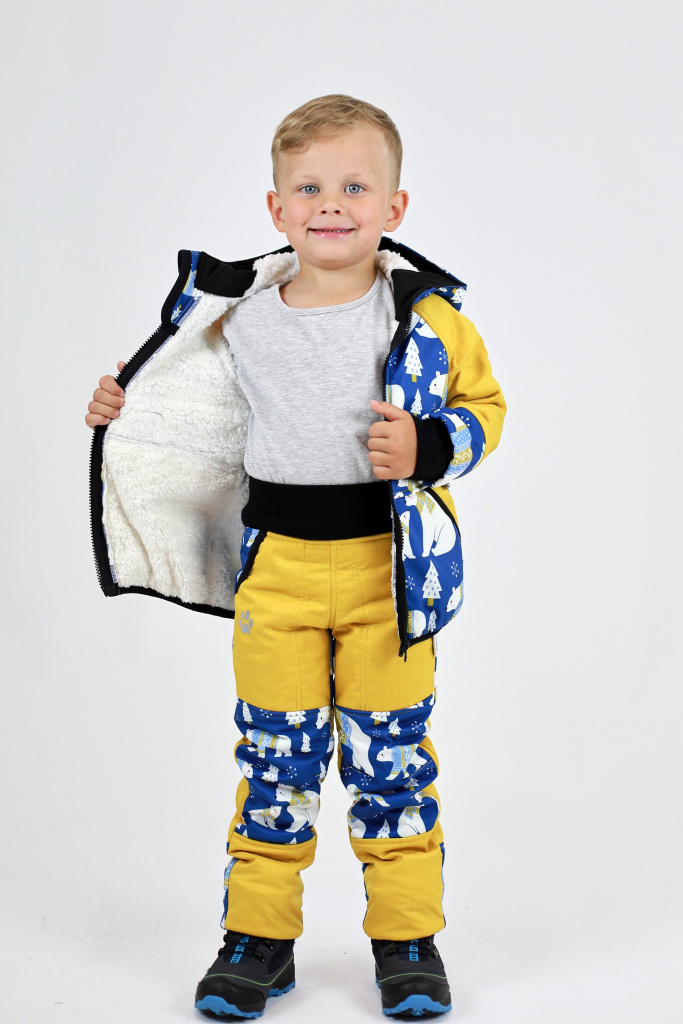 Teplé dětské softshellové kalhoty s beránkem – voděodolné, prodyšné a pohodlné. Ideální zimní kalhoty pro děti s motivem ledních medvědů a rostoucím střihem. Více informací