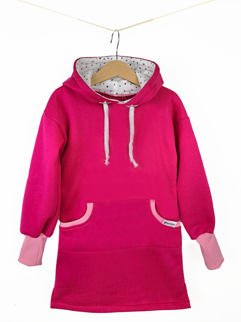 Hledáte pohodlné a stylové mikinošaty pro holčičku? Naše růžové dívčí šaty s kapucí jsou ideální volbou pro každou malou princeznu! Ušité z měkké teplákoviny s počesem, hřejivé a zároveň prodyšné – perfektní na hraní, běhání i běžné nošení do školky nebo školy.