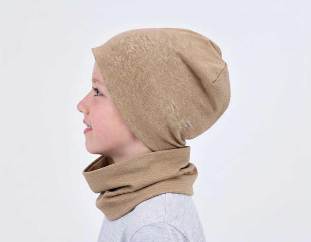 Krásný dětský SET čepice s nákrčníkem v designu jednobarevného melíru. Bavlněný, podšitý a příjemně pružný. Ideální na jaro, podzim i mírnou zimu. Více informací