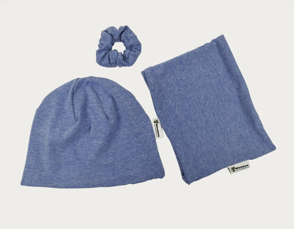 Krásný dětský SET čepice s nákrčníkem v designu jednobarevného melíru. Bavlněný, podšitý a příjemně pružný. Ideální na jaro, podzim i mírnou zimu. Více informací