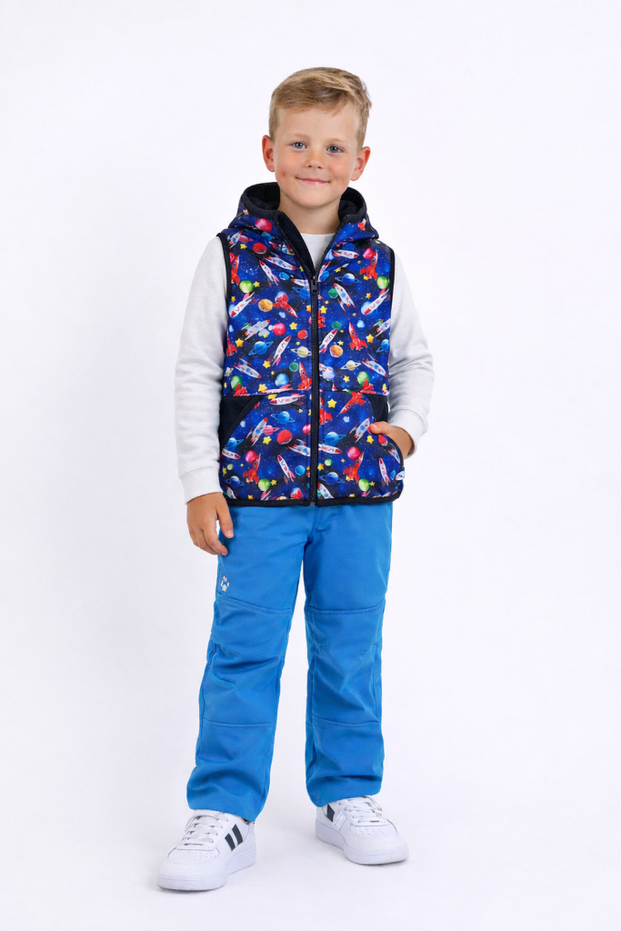 Dětská softshellová vesta je skvělý parťák do proměnlivého počasí – zahřeje, neprofoukne a zároveň je krásně prodyšná, takže se děti při pohybu zbytečně nepřehřívají. Díky pohodlnému střihu mají volnost při běhání, na kole, na hřišti i při výletech.